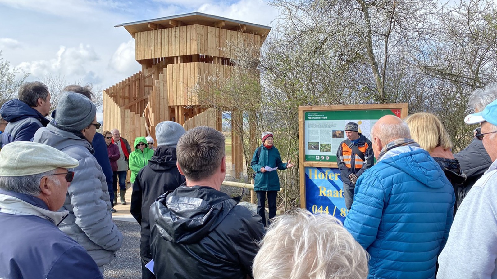 Am 9. April war es soweit: Suzanne Oberer, Präsidentin von BirdLife-Schweiz, weihte zusammen mit der Projektleiterin Beatrice Vögeli von der Fachstelle Naturschutz Kanton Zürich und dem Höremer Gemeindepräsidenten Roger Götz die grosse Renaturierung und den Beobachtungsturm ein. Zahlreiche Anwohnerinnen und Anwohner nahmen am Anlass teil.